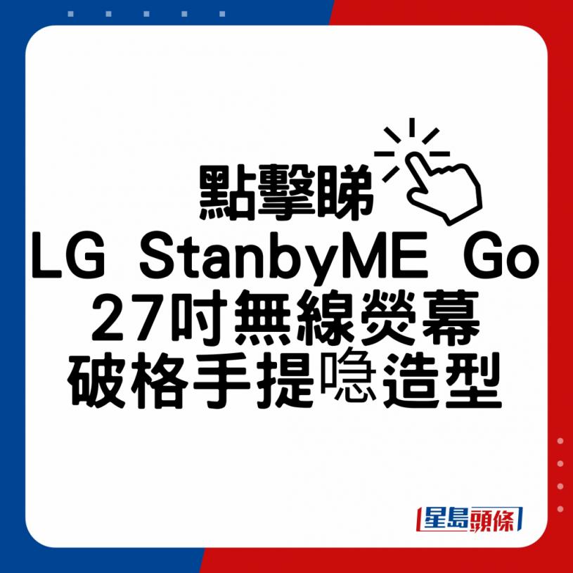 LG将于9月推出采用破格手提喼造型的哋27吋无线荧幕StanbyME Go。