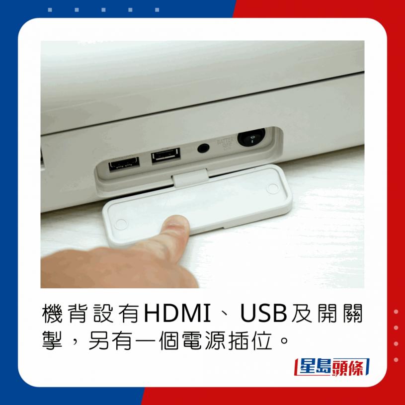 机背设有HDMI、USB及开关掣,另有一个电源插位。
