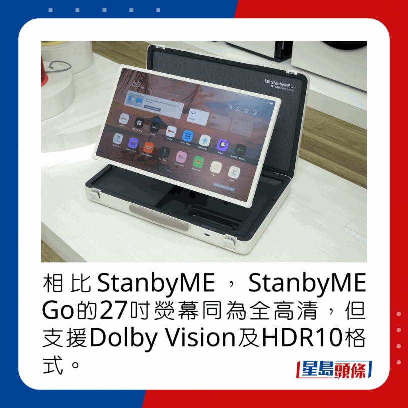 相比StanbyME,StanbyME Go的27吋荧幕同为全高清,但支援Dolby Vision及HDR10格式。