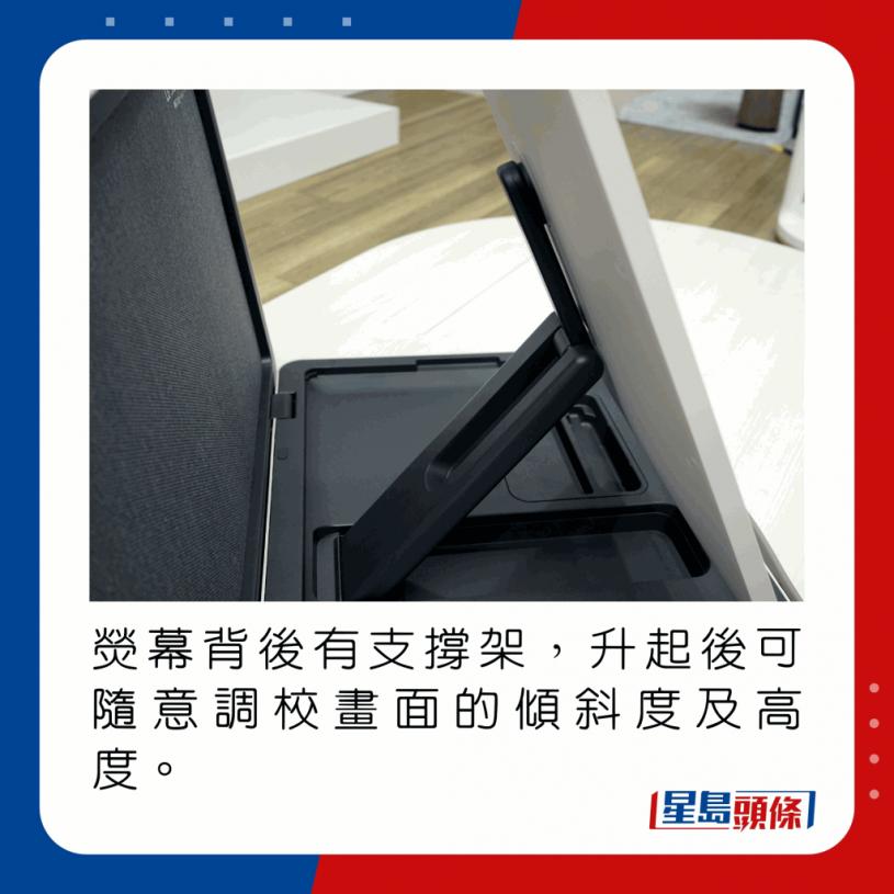 荧幕背后有支撑架,升起后可随意调校画面的倾斜度及高度。