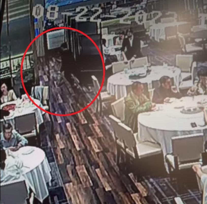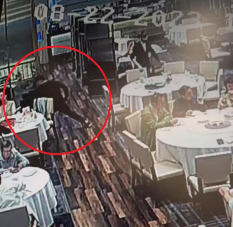 影片显示,一名全身黑衣男子、戴着帽子在 8 月 22 日晚间 8 点 45 分走进餐厅,他装作正在打电话的模样,但很快地转身抢走了身旁一个正在用餐的女士的手袋,然后迅速逃离现场,整个事发过程仅仅几秒时间。