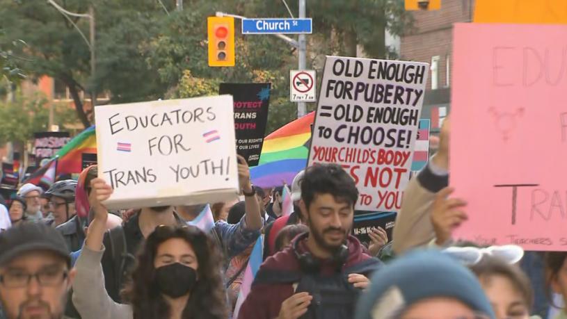 在渥太华两派意见共数千人聚集在国会山前对峙,新民主党党领驵勉诚 (Jagmeet Singh)带领一群反抗议者沿街游行。大量警察将抗议者与反示威者分开,一方高呼要保护跨性别青年,另一方称要将性别意识形态排除在学校之外。