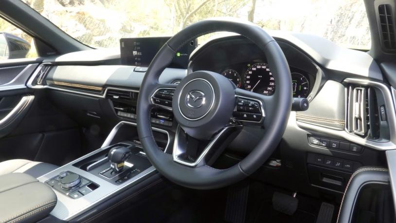 全新CX-90采用一台全新3.3公升直六Turbo引擎,并备有48V轻油电系统辅助,引擎输出马力345ps、扭力51kgm,马达可额外增加17ps及15.6kgm,配合8速Skyactiv-Drive自动波箱及电子恒式四驱。在一众大型7座位SUV而言,CX-90起动及加速反应算很敏捷,表现绝不狂野凌厉,不过只要轻踏油门便有充沛顺畅力量感,有赖引擎及波箱之间加有48V电马达协助。