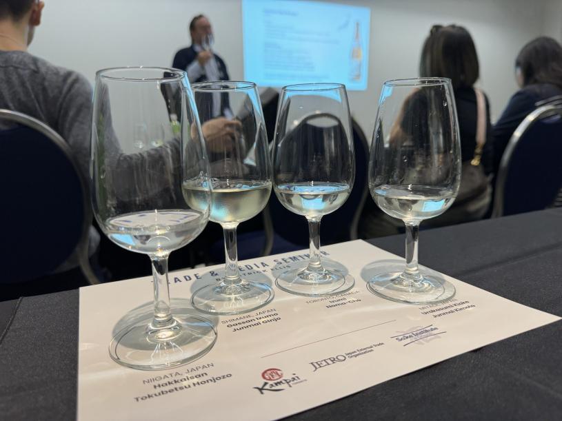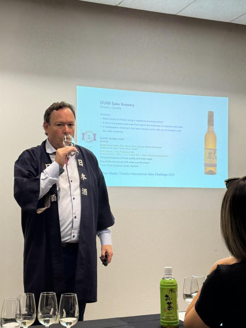 在当日的贸易商及媒体时段,大会特地安排了讲座时段,邀请了加国仅两名获日本颁衔“酒武士”之一的Patrick Ellis为众人讲解清酒文化及知识,并为大家带来四款美酒作为清酒入门,其中一款由Izumi出品Nama-Cho的清酒更是安省本土出产,令人惊叹。