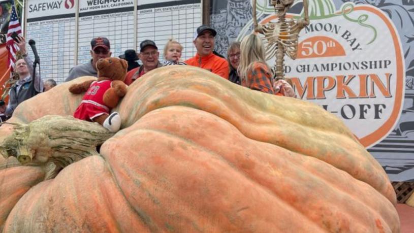 【星岛综合报道】美国加州一只南瓜本星期在Safeway World Championship世界南瓜称重锦标赛夺冠,未来或能破健力士世界纪录。