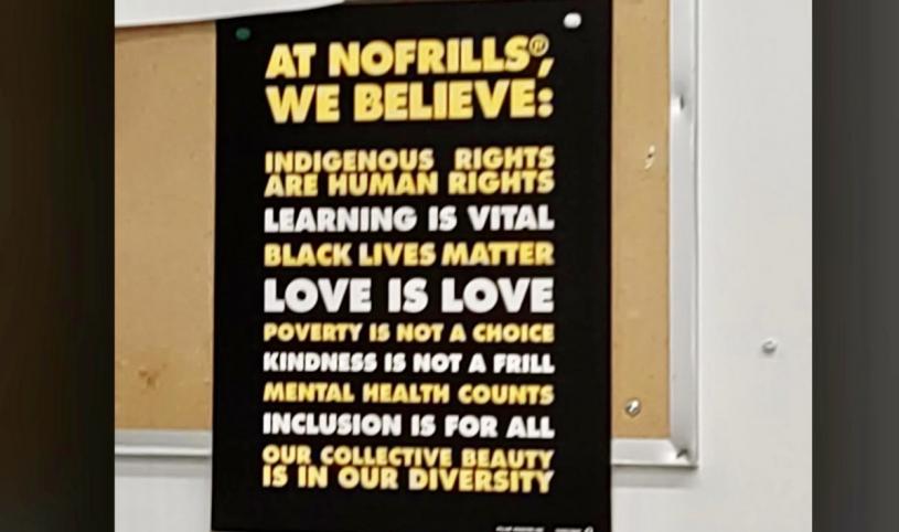 一位居民在Reddit分享了一份张贴在当地No Frills员工区域、类似规范准则(code of ethics)的海报,其中表示反贫困,“No Frills说贫困不是一个选择,但支付最低工资,具有讽刺意味。”此人指出,以省内当前的生活成本和No Frills的薪水,店员很可能是贫困人口。