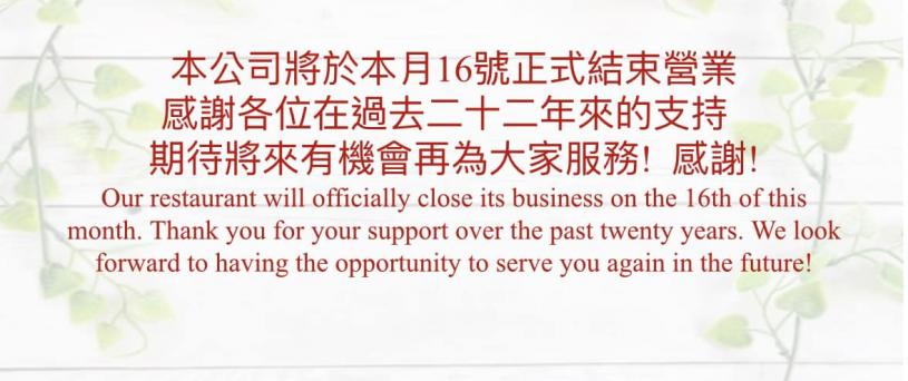 知味斋于昨(16日)突然透过Facebook宣布将关闭,通知上先感谢社区,“我们衷心感谢美好社区,感谢您成为我们旅程的一部分。”