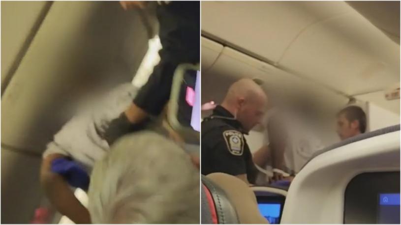 根据网上片段显示,一名乘客在飞机上尖叫。他被职员限制在座位上,不断尖叫和踢椅背超过一小时。满地可警察其后登上飞机,拷上手铐后押送他离开。