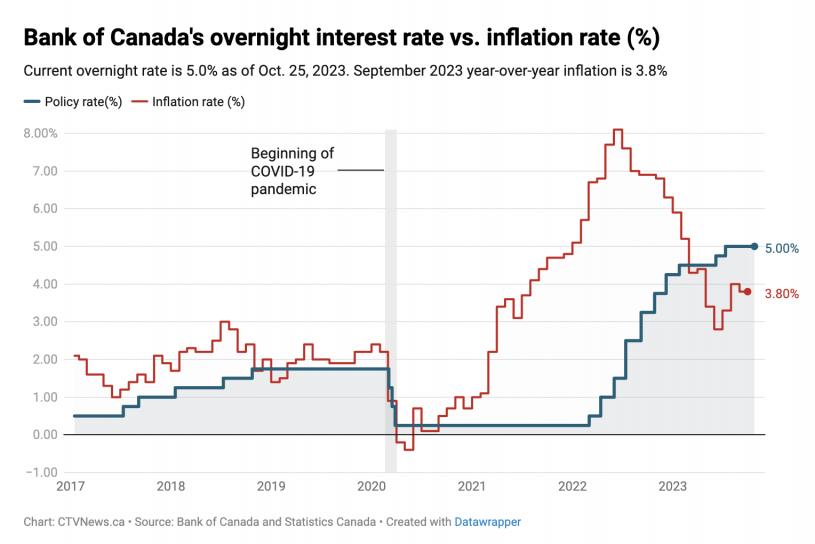【星岛综合报道】加拿大央行今日(25日)宣布将基准利率维持在5%不变。原因是加拿大经济继续放缓,且有迹象显示供求接近平衡。