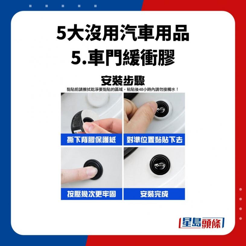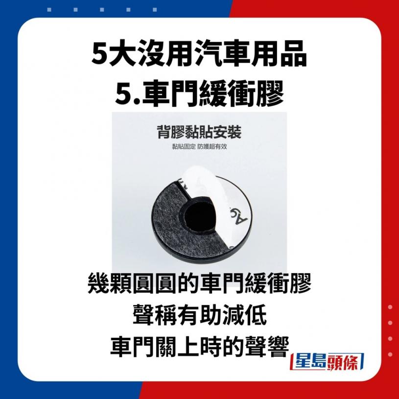几颗圆圆的车门缓冲胶,声称有助减低车门关上时的声响,在淘宝轻易就能看到多达20万套的销量。实际上,这类车门缓冲胶贴上后根本未能接触车门,这又如何可以减低关车门的声响?如希望做到效果,倒不如用胶条或是将胶条加厚,效果都会比这类产品好。