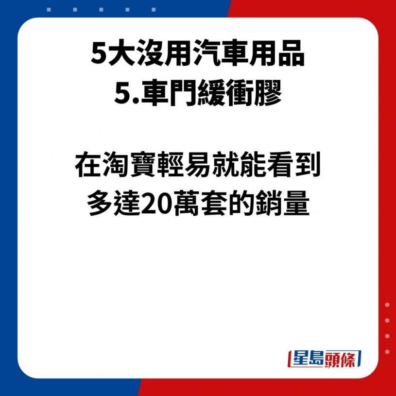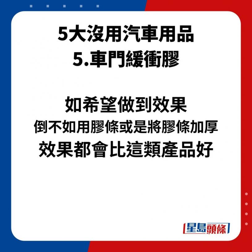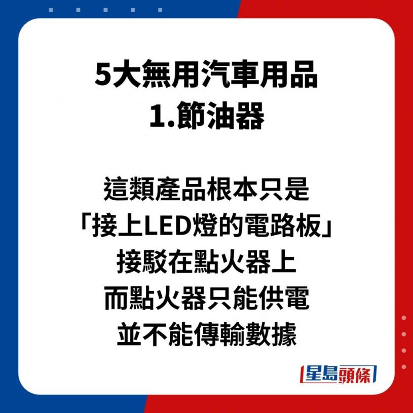 不过,有内地博主就列出“5大无用汽车用品”,不仅未能节省驾车成本,有的甚至会为驾车带来致命的危险,更指购买这些产品根本就是在交“智商税”!