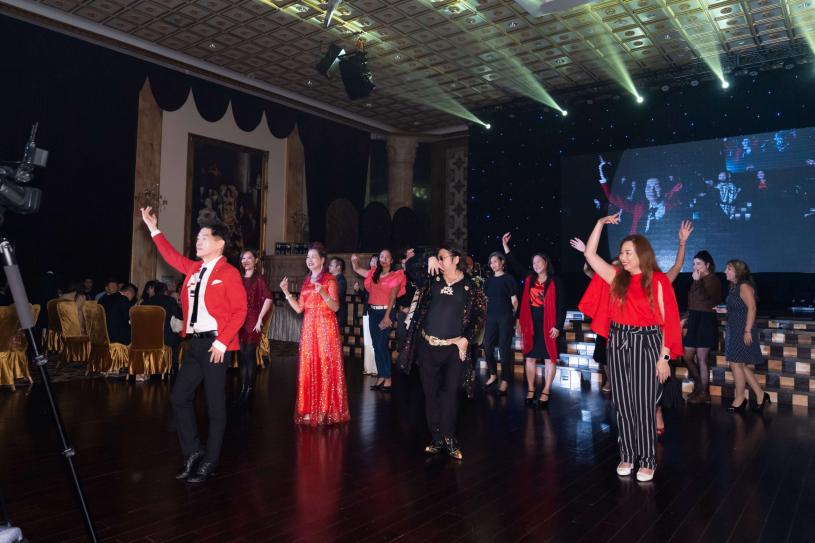 舞蹈老师 Tommy Chung 带领现场宾客跳排舞。