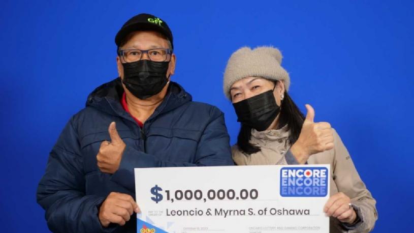 Leoncio 和 Myrna Santos 是安省奥沙华居民,据安大略省彩券和博彩公司(OLG) 昨(31日)发布的新闻稿指,在“按顺序”猜出所有七个数字后,玩家在9 月23 日的乐透6/ 49 Encore 中赢得100万元。