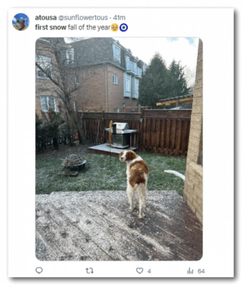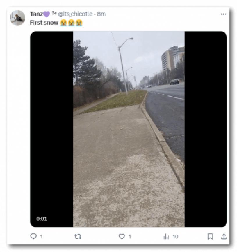 【星岛综合报道】多伦多初雪来啦!今日(24日)黑五的下午,大多地区本季第一场雪终于降临,预计下周还会有更多降雪。