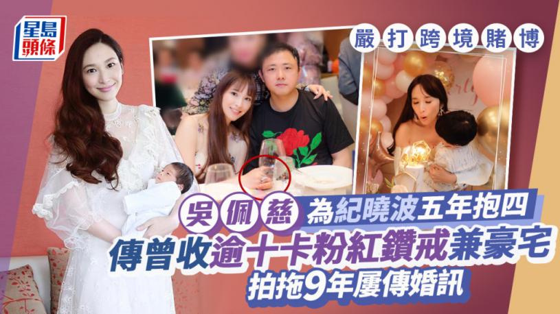 嚴打跨境賭博︱吳佩慈為紀曉波五年抱四!拍拖9年屢傳婚訊 傳曾收逾十卡粉紅鑽戒兼豪宅