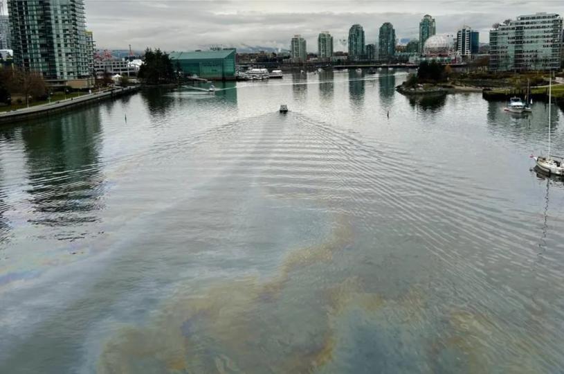 【星岛综合报道】美丽的温哥华福溪竟被柴油污染。加拿大海岸防卫队表示,他们正在试图找出漂浮在温哥华福溪上的油污来源。