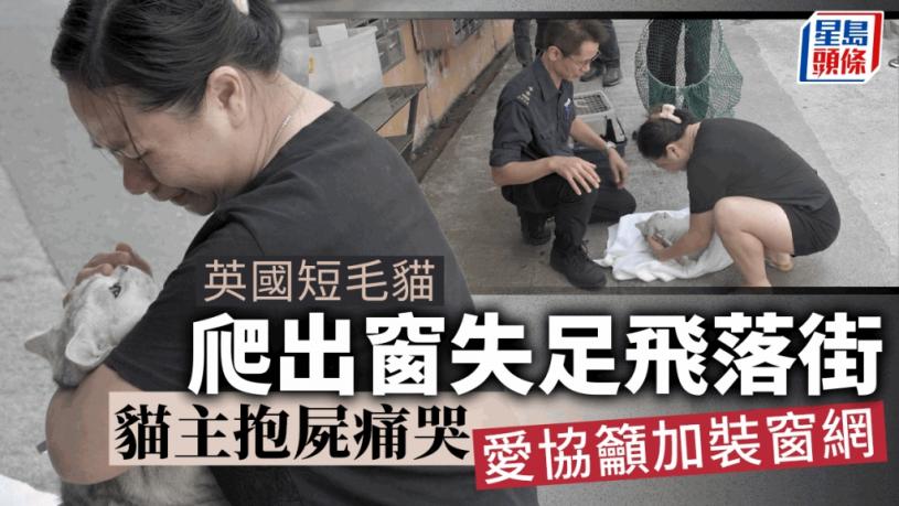 觀塘瑞寧街發生飛貓事件!今(9日)晨7時48分,瑞寧樓一隻貓從7樓跌落6樓,被困在簷蓬窗邊位置,驚險萬分。消防到場嘗試將貓引導回住所内,貓咪亦嘗試跳回屋内,但未料失足由高處墮下,女貓主見狀連忙落樓查看,赫見愛貓已慘死,抱着貓屍痛哭,久久不能自已。