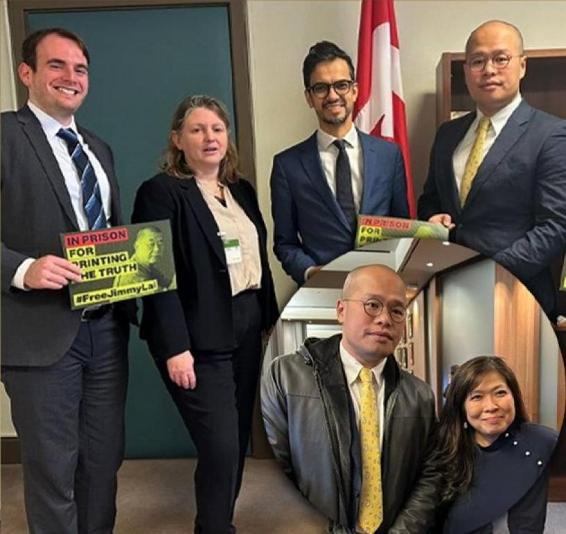 新民主党国会议员关慧贞稍早也与黎崇恩会面,她称黎智英代表的是加拿大的价值观和信念,敦促联邦政府和所有国会议员一同呼吁释放黎智英,并停止以《国家安全法》迫害和起诉他人。