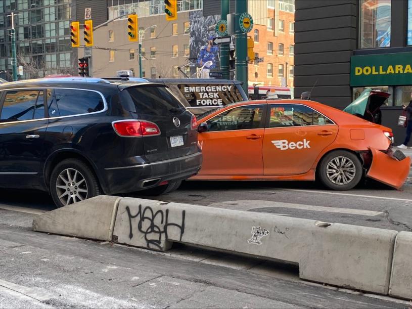 警方表示,货车在穿过杜咸区和多伦多部分地区时发生几宗轻微事故,造成损坏和人员轻伤。调查人员证实,U-Haul在Spadina以西的Adelaide造成三车相撞,涉及一辆 ETF 车、一辆 SUV 和一辆 Beck的士。