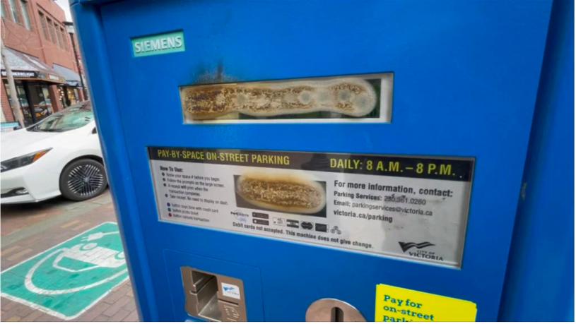 【星岛综合报道】卑诗省府所在地维多利亚,市中心80个停车场遭到可能是历来最严重的破坏,令节礼日购物人潮好不容易找到停车位也无法付费。