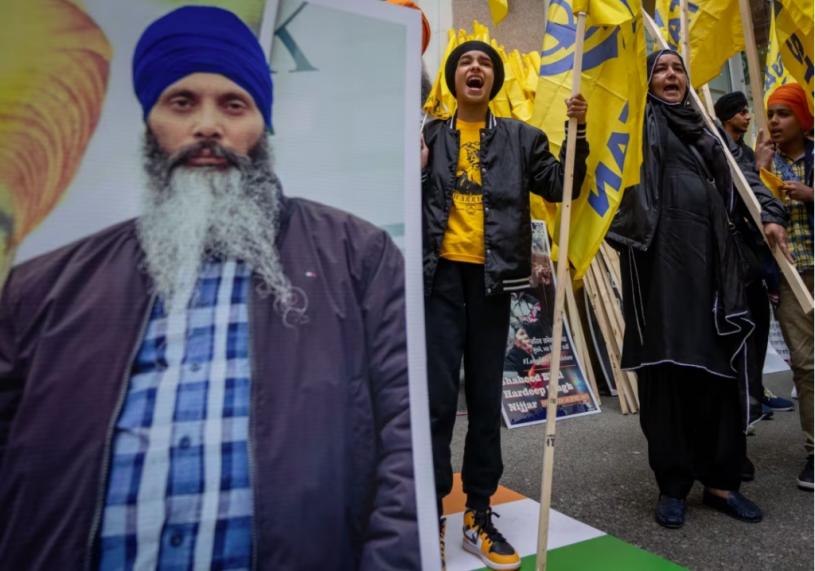 人们在印度驻温哥华总领事馆外抗议尼贾尔遭枪击。加通社资料图片