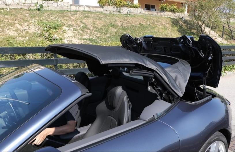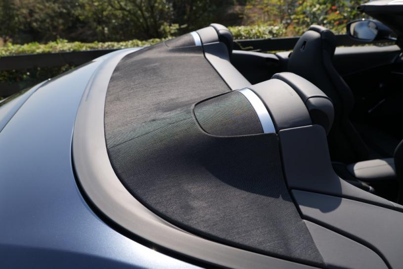 车子有两个项目令笔者感到十分惊喜,首先是与后座背结合一起的自动升起挡风板,看似简单的设计,不过厂方指是经过长时间风洞测试研究,行驶时确实可令车厢乱流大幅降低,而又有非常舒适的气流环绕整个空间。另外是关上篷顶会发现车厢十分宁静,全新五层构造软篷隔音效果真厉害。