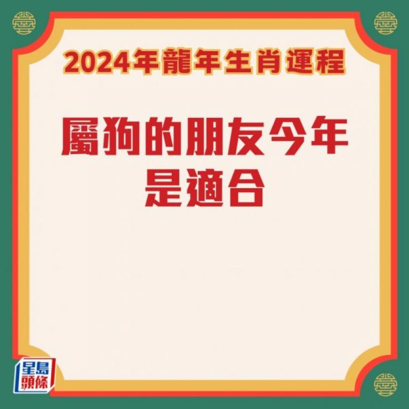 屬狗的朋友來到龍年要有心理準備,是沖太歲,在十二生肖當中是變化最多,所以在這年份是不穩定。有吉星照著,有國印星代表掌管權力的帥印,升職加薪都沒有問題。