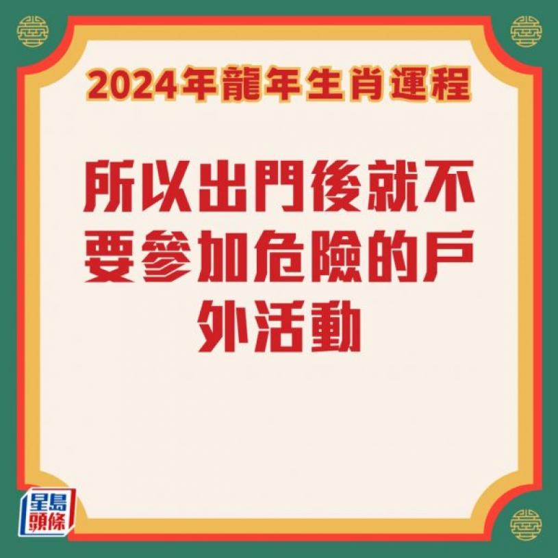 但要小心今年都有凶星,天狗、吊客以及天哭,這些星是代表出門之後受到驚嚇,所以出門後就不要參加危險的戶外活動,同時要注意行李延誤又或是天氣變化,