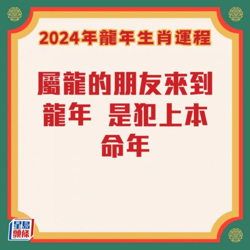 屬龍的朋友來到龍年是犯上本命年,犯本命年是犯太歲的一種。中國人有云,一喜擋三災,無喜是非來,太歲當頭坐,無喜必有禍。犯太歲的年份,如果有傳統的大喜事沖喜當然是最好,結婚、添丁及置業都是傳統的大喜事,而且屬龍的朋友,今年不只是本命年,也是迎太歲的年份,所以是雙重犯太歲。