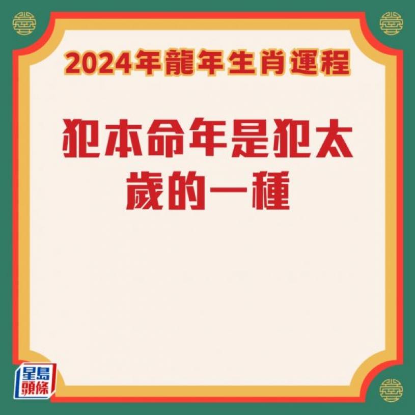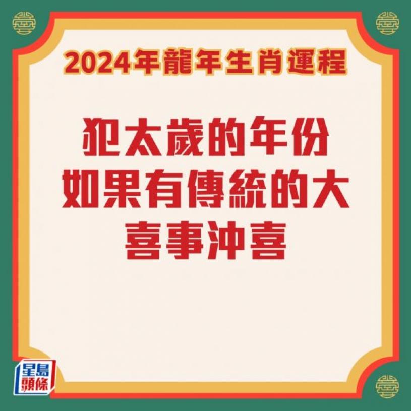 其實沖太歲的年份不一定差,最重要就是所謂宜動不宜靜,能夠多點走動一下,不要停留在一個地方。其實今年的發展算是不錯,如果從事的工作是四圍走動,