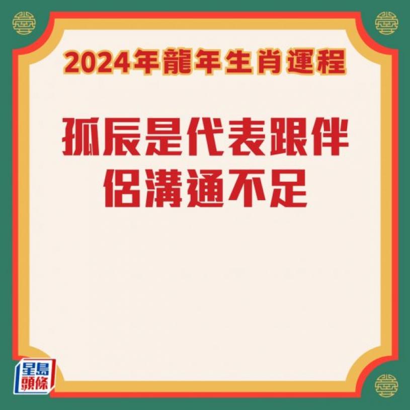 至於凶星方面,就有孤辰星及晦氣星,孤辰是代表跟伴侶溝通不足,有點孤單的感覺。晦氣亦是代表被人埋怨,所以在人際關係方面要小心點。當龍年過去之後 就是蛇年的本命年,所以到第四季時,屬蛇的朋友就要開始提高警覺,預備自己的本命年