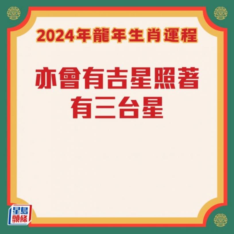 2024年龍年運程,麥玲玲為大家分享12生肖運勢!看運勢除了留意自己的生肖有否犯太歲,或是犯哪一種太歲外,亦要留意今年的吉星及凶星,這都會影響龍年際遇。究竟今年有什麼吉星高照?有什麼凶星需要化解?留意下文,12生肖運勢一文看清!