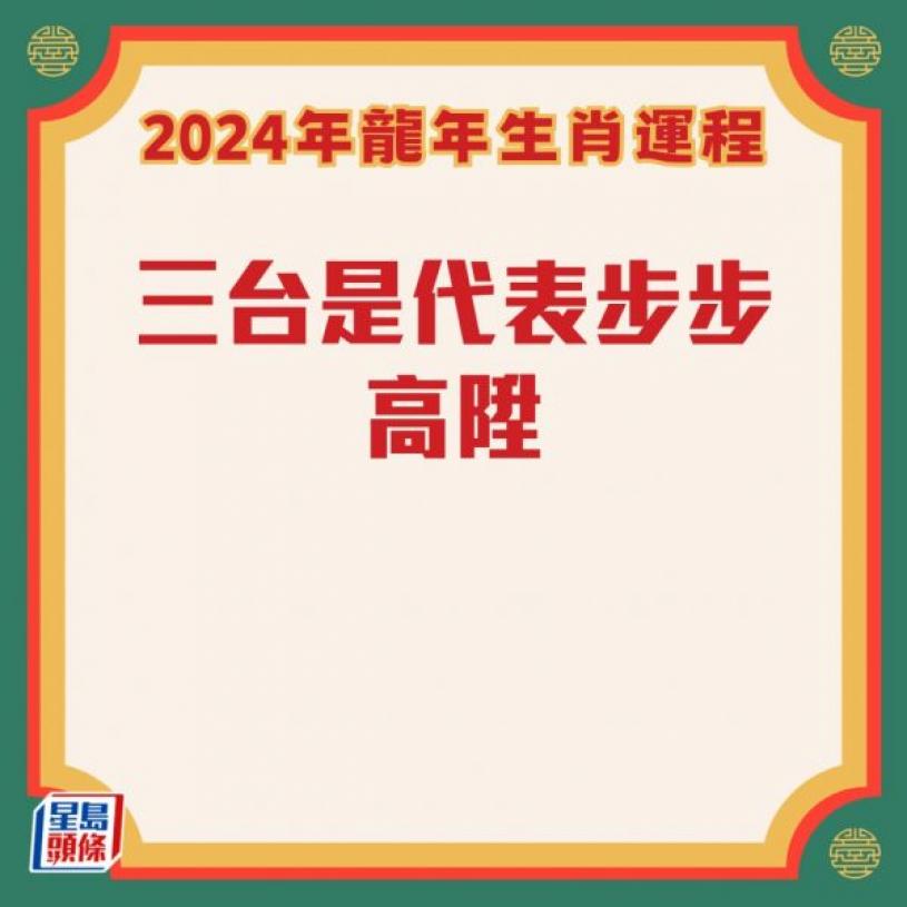 屬猴的朋友來到龍年算是不錯,因為猴跟龍本身是好朋友,當跟太歲是好友時,自然做事都會順利一點,亦會有吉星照著,有三台星代表步步高陞,三台這個星其實是代表樓梯階,一路慢慢的進步,所以不論在財運、感情運或事業運方面,今年都會有輕微的進步。