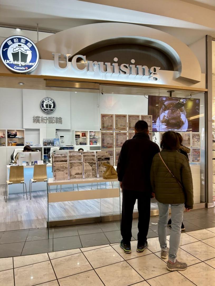 缤纷邮轮列治文分店吸引许多民众驻足观看邮轮资料。星岛记者黄忆欣摄