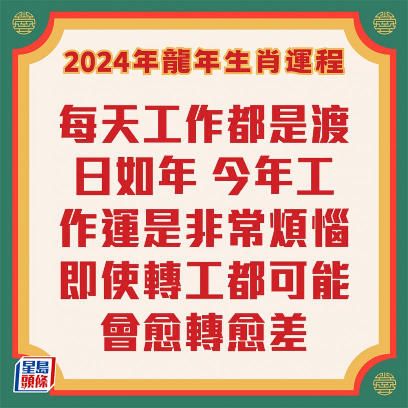 2024年龍年運程│尚有一個月即將踏入龍年,「七師傅」七仙羽分享2024年龍年運程!「七師傅」分享勝在貴精不貴多,哪些生肖行好運,強運在什麼地方?哪些生肖於龍年要份外留神,當然一一盡錄, 有一個生肖「七師傅」評為「非常不幸」,究竟可如何化解?即睇七仙羽12生肖開運貼士。