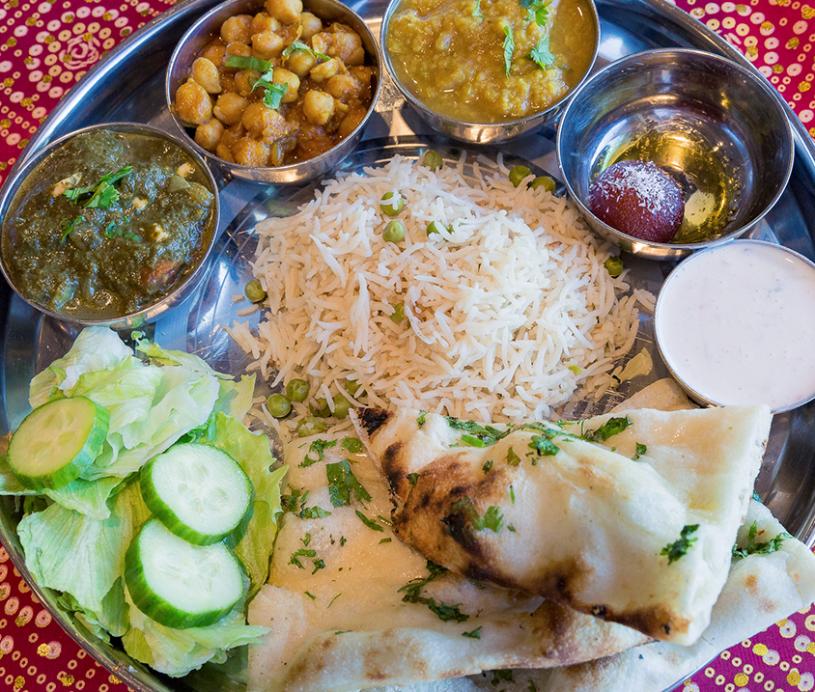 菜单亮点:开胃菜拼盘(Appetizer Platter)、菠菜干酪(Palak Paneer)、印度米布丁(Kheer)