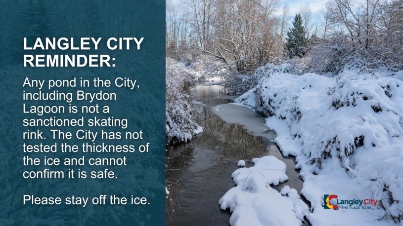 “在兰里市,就像大温哥华地区的许多地方一样,我们通常不会遇到长时间冰冻的情况。也许加拿大其他地区可能会测试冰层并向公众开放,但考虑到我们这里的天气短暂低于冰点,我们在兰里市不会这样做。虽然它看起来很漂亮并且应该享受,但在冰上活动是非常危险的,它超级薄,会让你自己和孩子们处于危险之中。”
