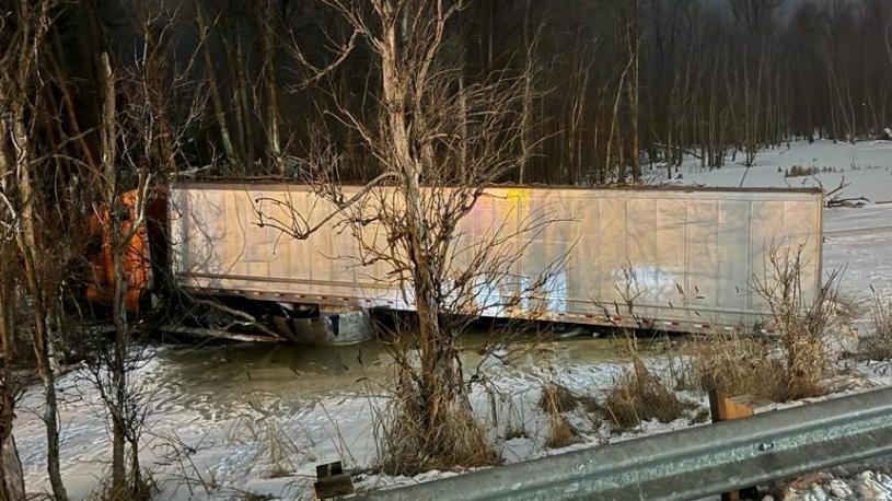 大货车失控撞树跌入结冰沼泽地 401公路封闭10小时现已开放