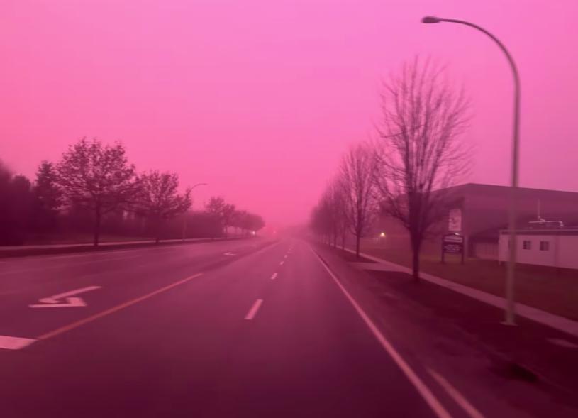 据加拿大广播公司(CBC)报道,周三上午7时半后不久,基隆拿(Kelowna)出现了粉红色的雾,几分钟后又恢复到更标准的灰色。