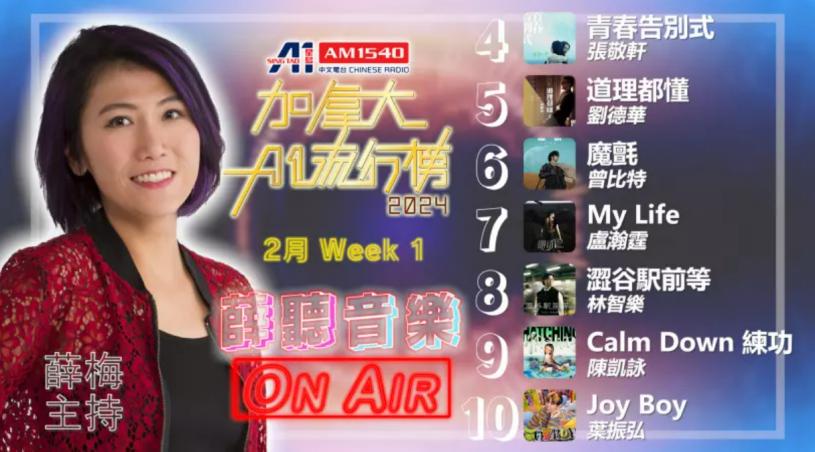 【A1 点将录】在加拿大喜欢听华语音乐的人,想必不会对“加拿大A1 流行榜”感到陌生。这个流行榜是由“A1 中文电台”DJ 薛梅每周选出。几乎每位DJ 都有做过音乐节目,但薛梅的音乐节目风格鲜明。由之前任职香港商台做雷霆881的音乐节目,走到今天的加拿大“星岛A1 中文电台”,《薛听音乐》始终陪伴着加拿大和香港的听众。