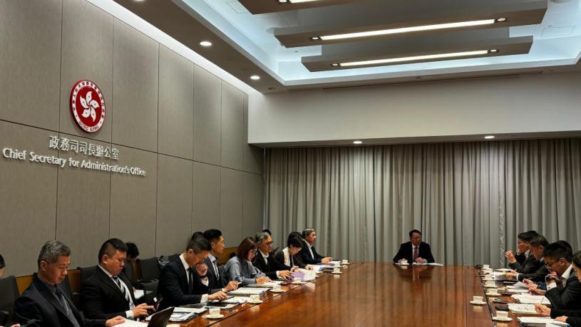 政務司副司長卓永興、財政司副司長黃偉綸、運輸及物流局局長林世雄,以及保安局、文化體育及旅遊局、環境及生態局、運輸署、海關、警務處、入境事務處、食物環境衞生署和政府新聞處派員出席今日的會議。