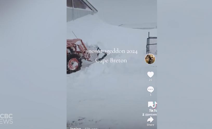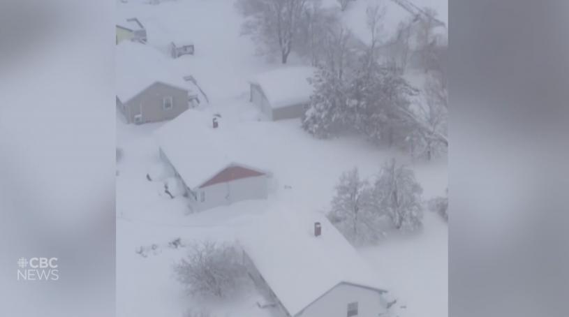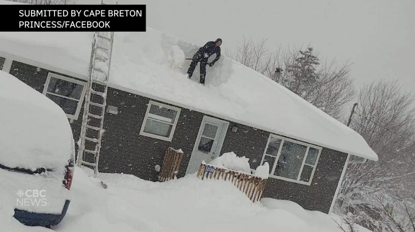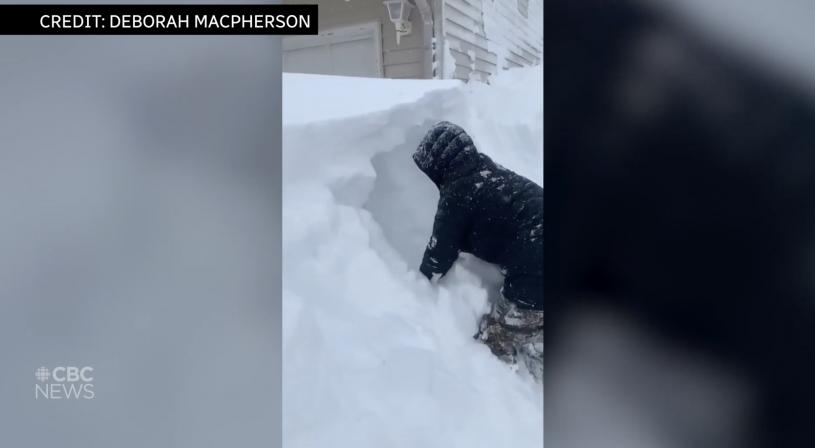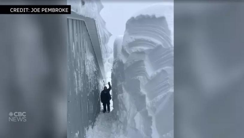 CBC氣象學家Ryan Snoddon說,截至周一早上,斯高沙省悉尼機場降雪量超過90厘米,而悉尼市中心降雪量則高達150厘米。