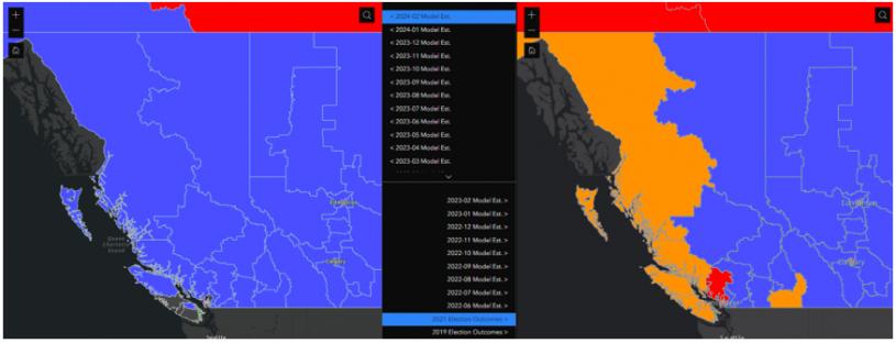 保守党也可能在卑诗省其他地区取得重大进展。2021年,温哥华岛和卑诗省西北部的大部分地区被NDP拿下,但纳诺斯数据显示,如果今天举行选举,这些选区可能会转向保守党。