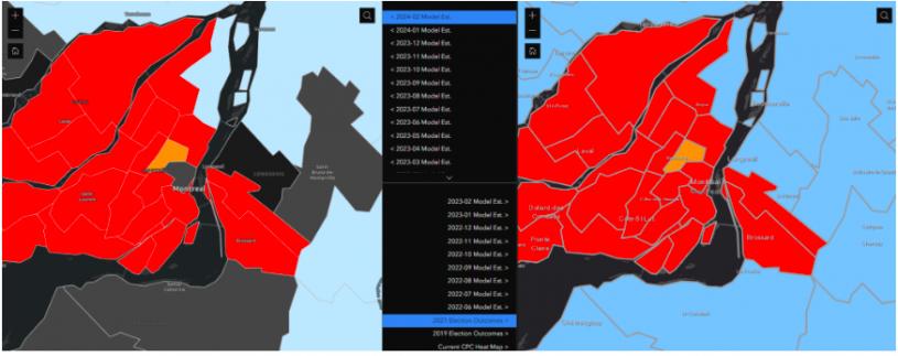 2021年,自由党几乎赢得了满地可岛和拉维尔(Laval)城郊的所有选区,而魁人政团则赢得了岛外的许多选区。
