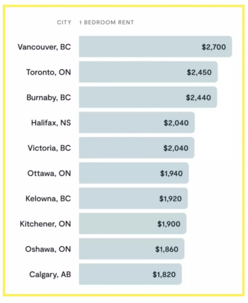 研究指出:“租金最贵的前三名城市温哥华、多伦多和本拿比,月租金保持稳定或下降。多伦多和本拿比是一居室月租金下降最多的城市,都下降了2%。”