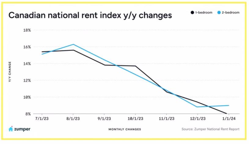 平台上个月分析了数十万条租赁列表,发现尽管预计2024年租金将增长,但多伦多出现了下降的情况,包括一居室和两居室的租金。