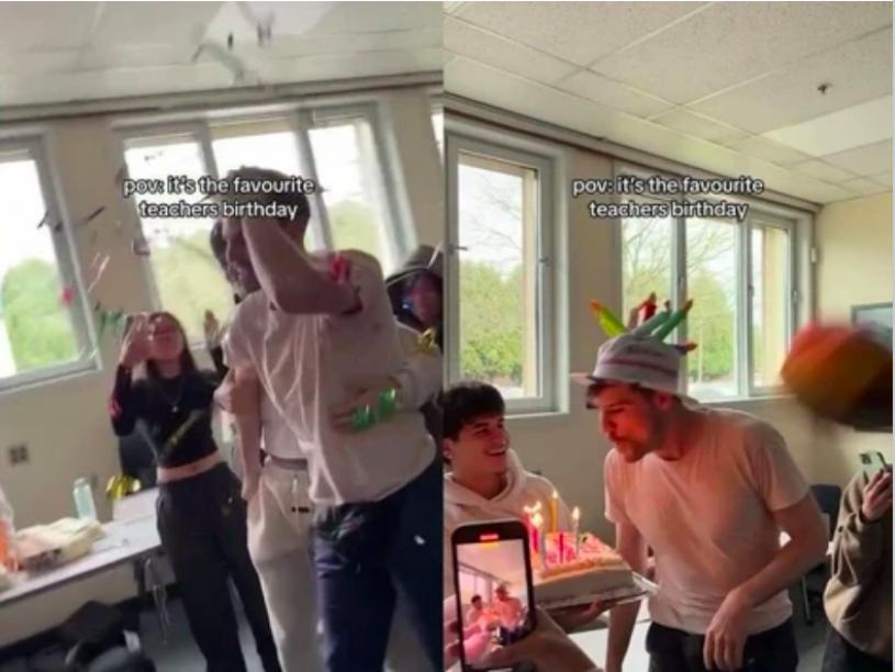 【星岛综合报道】素里约翰斯顿高地的学生想用惊喜向他们最喜爱的老师说“生日快乐”,当这位认真的老师冲过去阻止学生“打架”时,却得到了一份生日惊喜,这一惊喜现正在社群媒体上疯传。