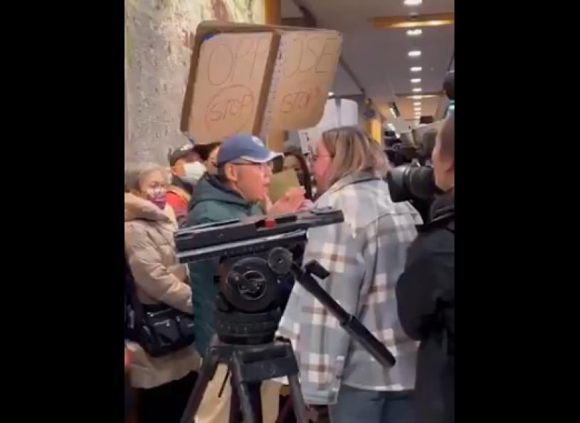 据《列治文新闻》(Richmond News)报道,周一晚上,这名女子在列治文市政厅,与反对在列治文设立一个受监督的安全注射屋的数百抗议群众对峙。