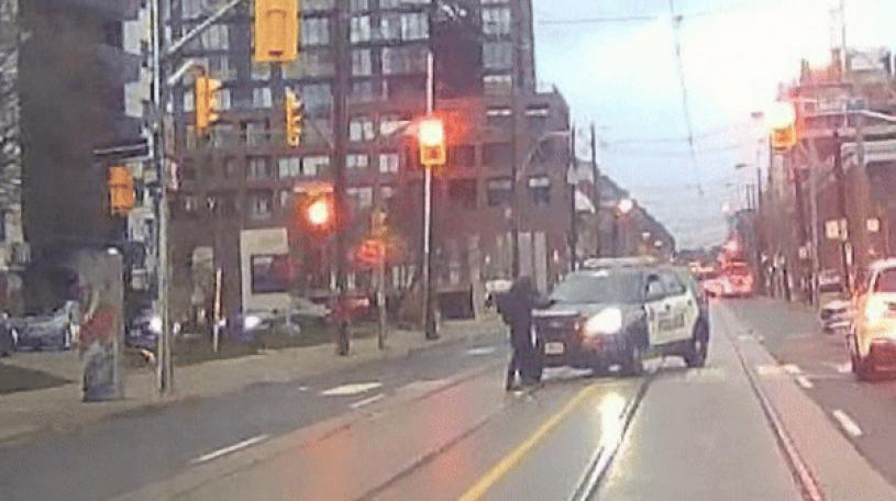 【星岛综合报道】一名多伦多女子在过马路时被一辆转弯的警车撞到,另一名司机的行车记录仪拍下了她的遭遇。