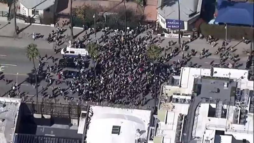 奧斯卡會場外有大批支持巴勒斯坦的示威者示威